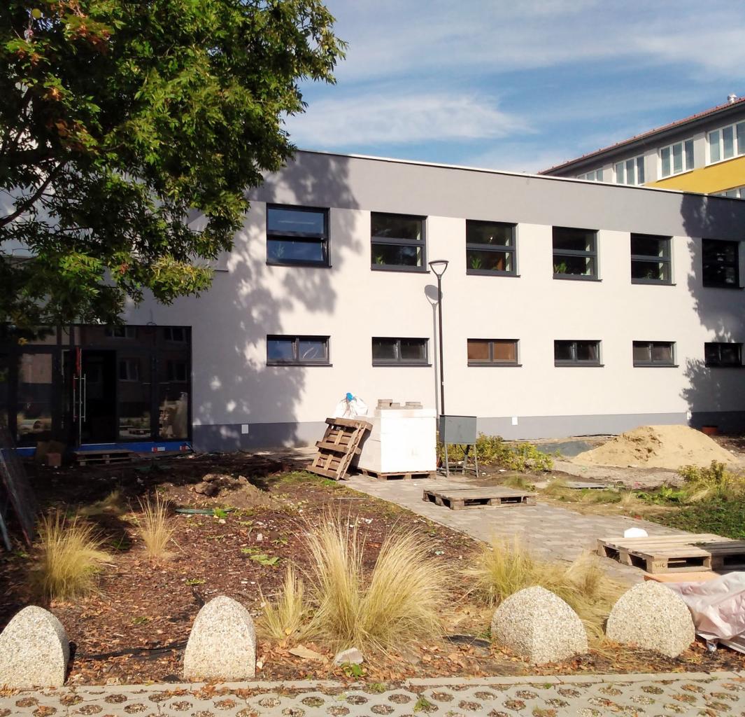Štyri učebne pre základnú školu tvoria horné poschodie bloku športovej haly s hygienickým a technickým zázemím, ktorý nahradí dočasnú kontajnerovú prístavbu. Učebne majú k dispozícií delené hygienické zariadenia (chlapci-dievčatá) a s prízemím budovy sú spojené dvojramenným schodiskom. Vstup do budovy je bočným vchodom z areálu ZŠ, kde bude vybudovaná aj rampa pre bezbariérový prístup.