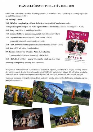 Obec Cífer v súvislosti s návrhom Kultúrnej komisie OZ zo dňa 12.5.2021 vytvorila plán kultúrnych podujatí.