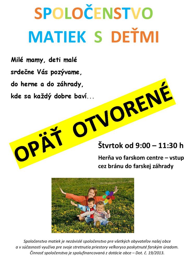 Herňa vo farskom centre je pre rodičov s deťmi otvorená každý štvrtok od 9.00 do 11.30 h
